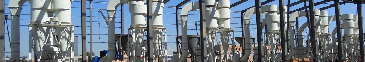大塊物料經(jīng)顎式破碎機(jī)破碎到所需粒度后,由提升機(jī)送至儲(chǔ)料斗,再由皮帶機(jī)將物料均勻定量連續(xù)地送入2臺(tái)MTW175歐版磨的主機(jī)磨室內(nèi)進(jìn)行研磨。粉磨后的物料被風(fēng)機(jī)氣流送入選粉機(jī)進(jìn)行分級(jí),在選粉機(jī)葉輪的作用下,不符合細(xì)度要求的物料落入磨室內(nèi)重新碾磨,合格的物料則經(jīng)空氣斜槽進(jìn)入旋風(fēng)集粉器內(nèi),進(jìn)行分離收集,經(jīng)排料裝置排出即為成品粉體。